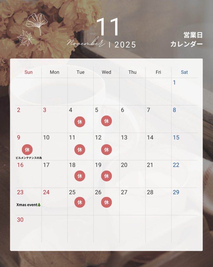 また、以前もご案内いたしましたXmasイベントは、11月23日(日)に開催予定となっております。