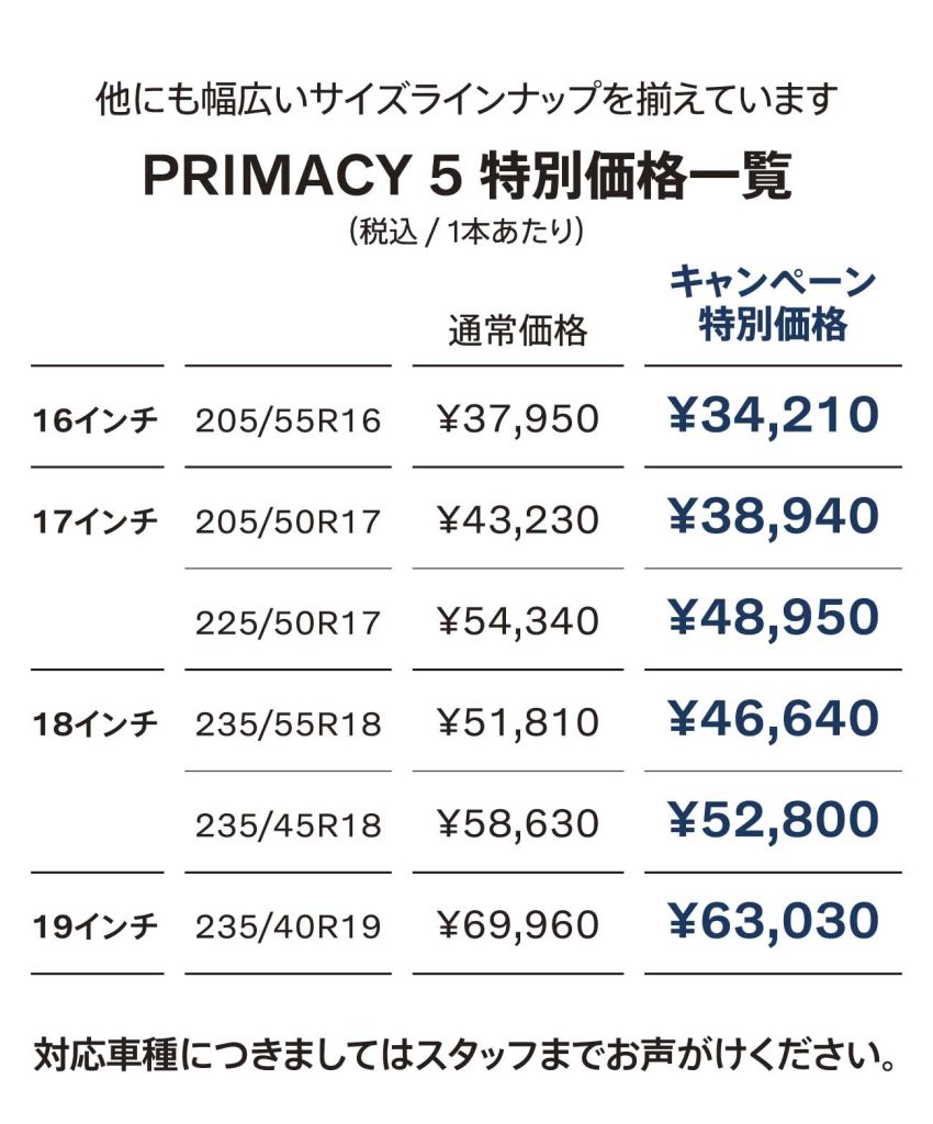環境にも配慮したプレミアムコンフォートタイヤを特別価格にてご案内中です。